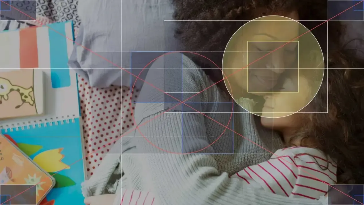 Focal point of mother and child positioned centrally.Image not positioned over central focal point.